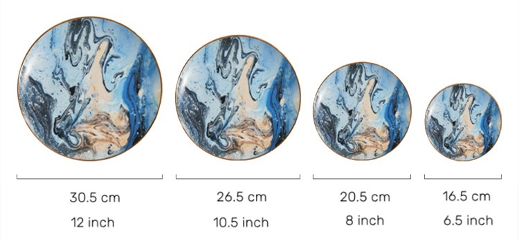 Size/Composition 12 inch Charger Plate*110.5 inch Dinner Plate*1 8 inch Dessert Plate*1 6.5 inch Bread Plate*1