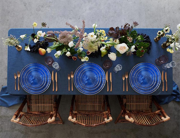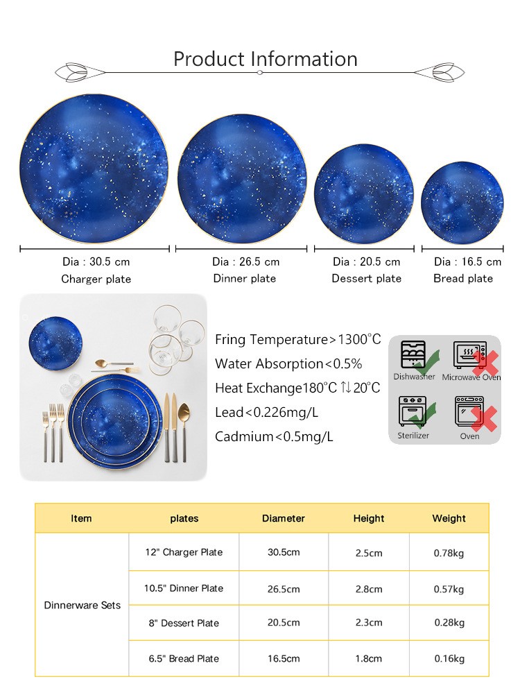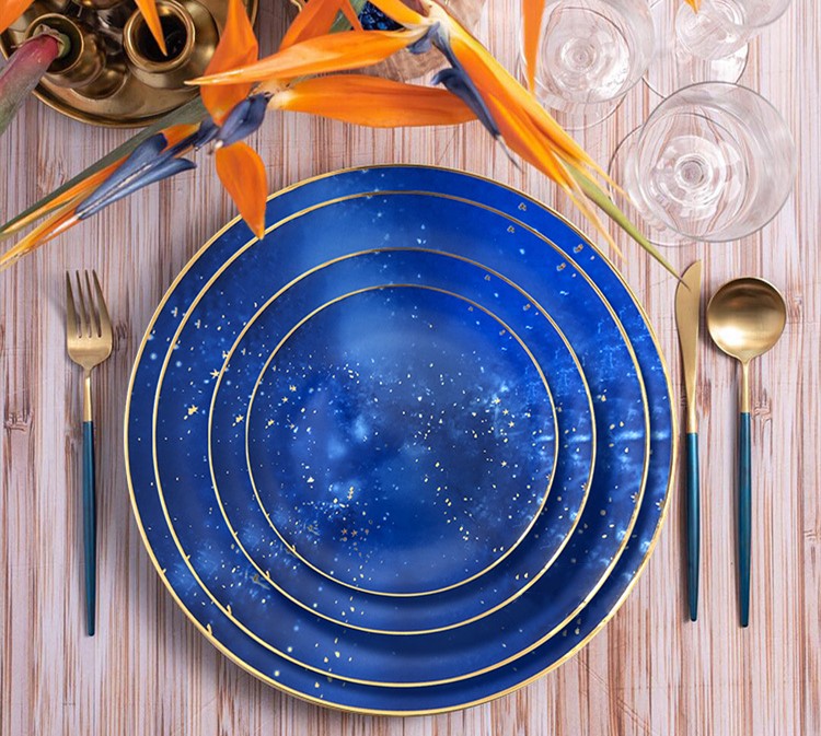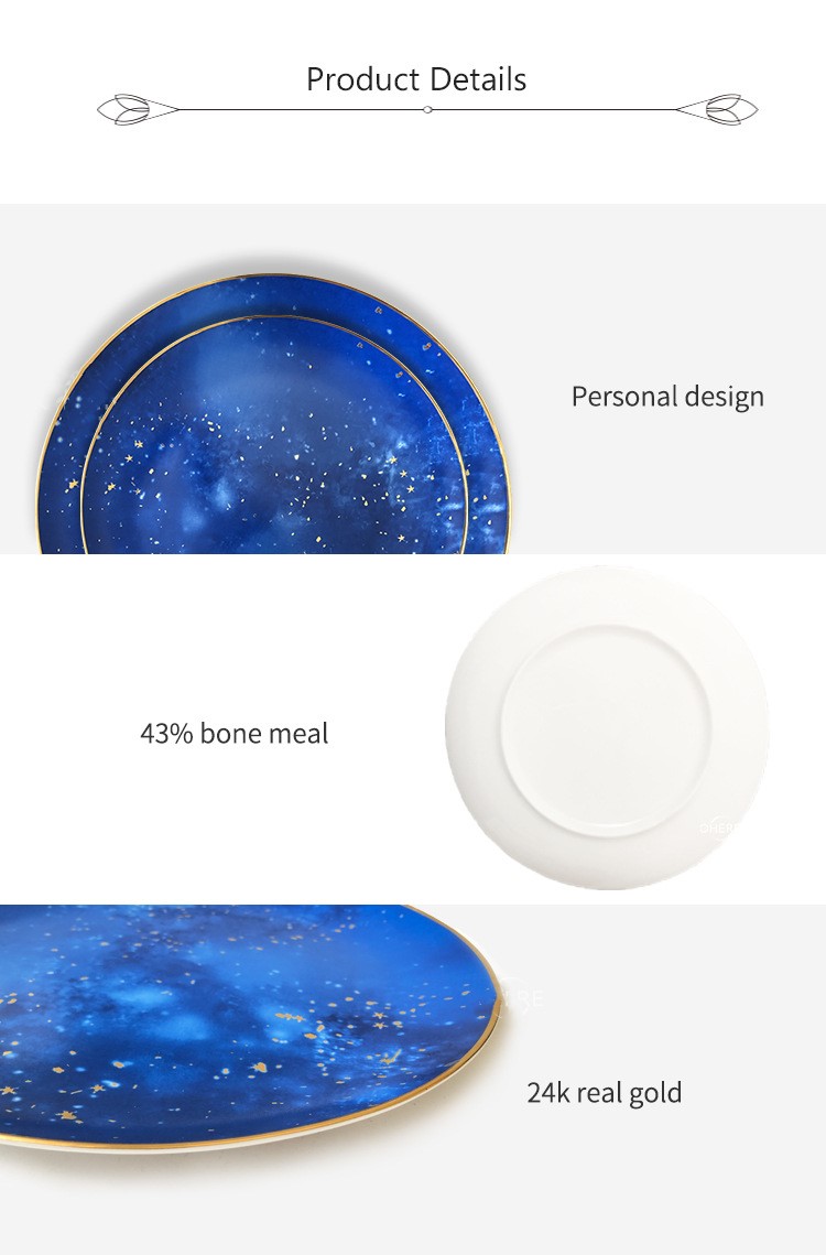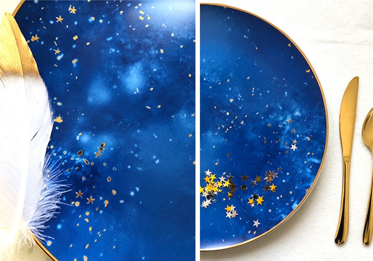 Blue starry sky gold rim bone china plates for wedding