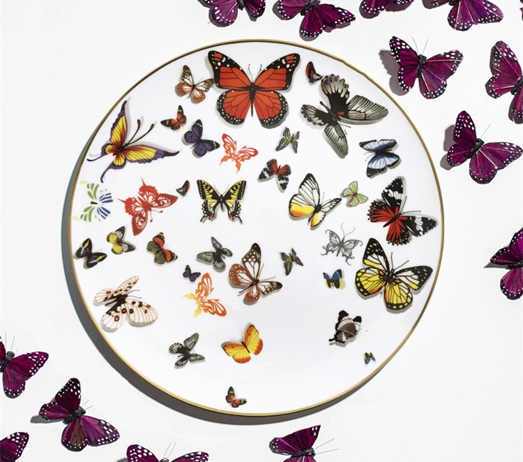 Colorful butterfly pattern bone china ceramic charger plates for wedding