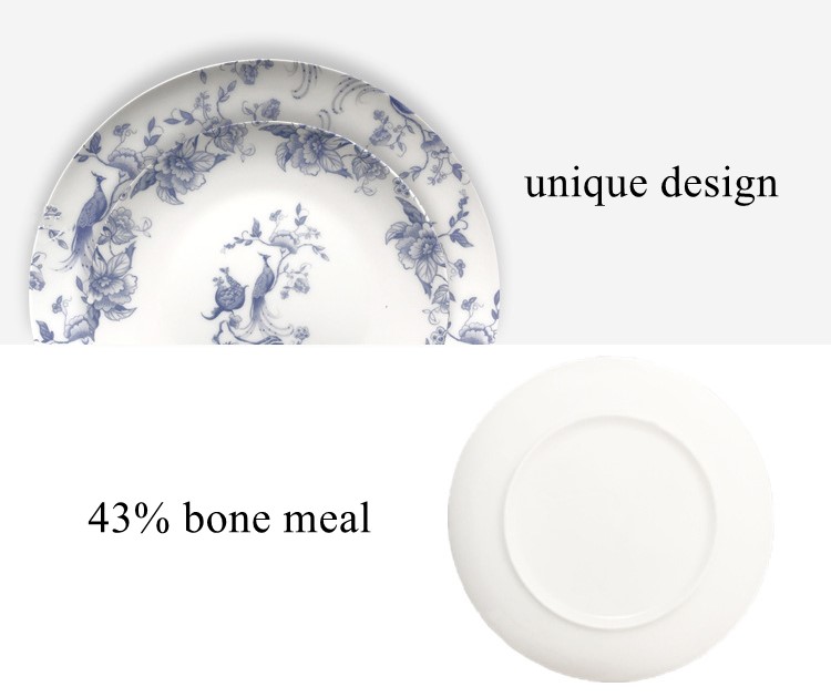 Hot selling peacock pattern bone china plates for wedding hotel party